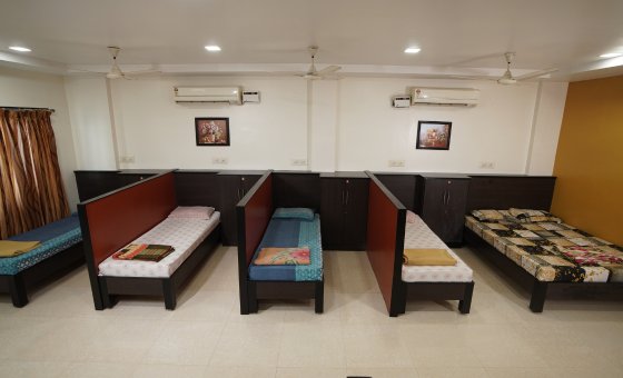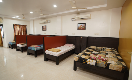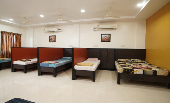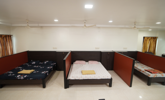 Perfect for large families, friends, pilgrim tours, or student groups. The Nakshatra Group Stay setup offers a dorm-style air-conditioned accommodation with space for up to 20 guests in one large hall. Economical and community-friendly.